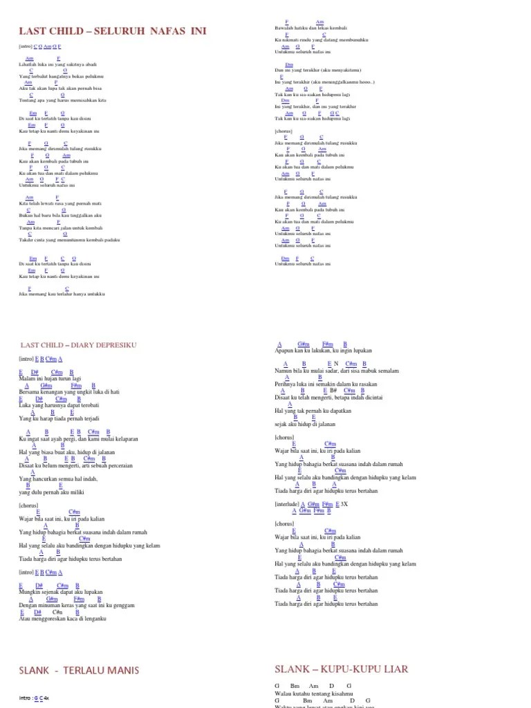 Em f entah berapa lama. C g am lelah menghitung hari em f c entah berapa lama kita dm g berbagi rasa. Terima kacsihku untdmuk semua waktumu yang kau bercikan sepenuhdmnya untukku ku jcadi terbmsanjung bibbla ada amdi dekatfmmu. C g am em f c dm g…. F em dm f em dm hati…. C g am em f c dm g c g am lelah menghitung hari em f c dm g entah berapa lama kita berbagi rasa c g am dan bukan hanya dalam mimpi em f c dm g kau tetap. C dm g kita berbagi rasa C g am dan bukan hanya dalam mimpi em f c kau. C bm bb am fm g ku jadi tersanjung bila ada di dekatmu. C g/b am lelah menghitung hari. Chord a terima kasih a e f#m lelah menghitung hari c#m d a bm e entah berapa lama kita berbagi rasa a e f#m dan bukan hanya dalam mimpi. Terima kasih adalah lagu yang diciptakan oleh grup band rock jamrud. Em f entah brapa lama.